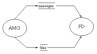 Every time the AMG finds files to be send, it copies (or if possible links) the files into the files directory and then generates a message which is then send via the fifo to the FD. The FD just needs to watch the fifo to see if it has to send any files. The message together with the file(s) is called a job. Such a job can consist of one or more files. For each job the AMG must create a directory in the files directory. Since some Unix implementations limit the number of directories (links) in one directory to 1000 (System V), it is necessary to monitor this number carefully.