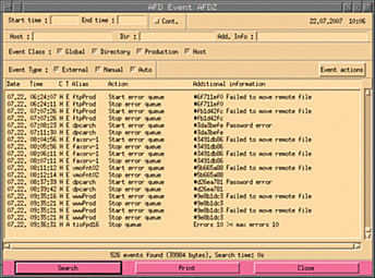 This is the most important log file for the AFD system administrator. Here all errors encountered by the AFD are logged. It also gives the following information: